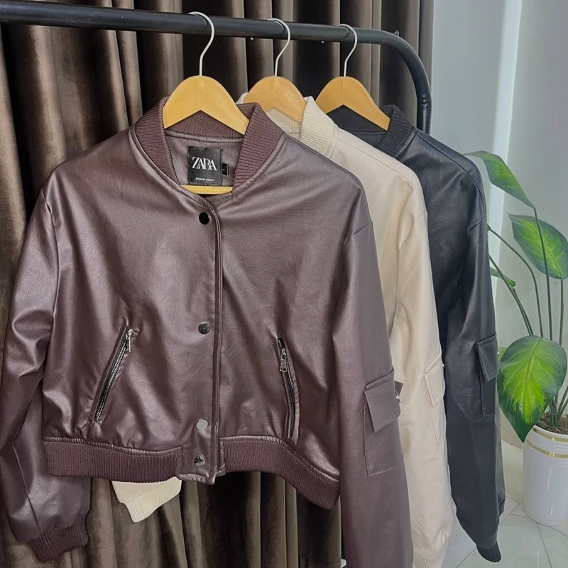 بامبر چرم زارا / کاپشن دخترانه /کت چرم / کاپشن چرم